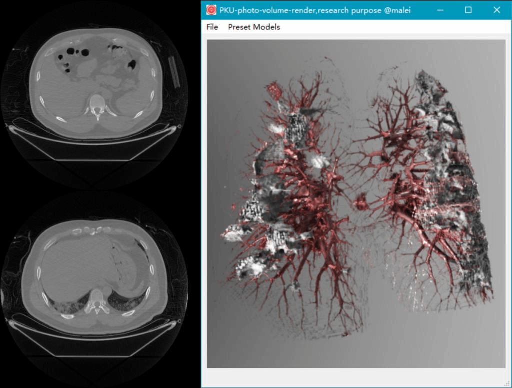 北京大学第一医院影像科邱建星主任医师表示,北大研发的高真实感体绘制技术不仅对于肺炎诊治有意义,也可以用于肺部肿瘤的定位,为外科手术服务。