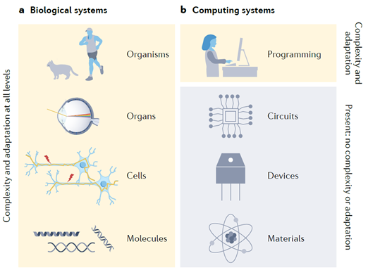 近年来,通过存算一体、类脑计算等新型计算范式构建具有高效智能计算芯片与系统已经取得了显著进展。然而,在现有计算系统下全部智能、复杂性、适应性都是由软件编程(事实上是编程的生物智能体-人)所赋予的,器件、电路本身均不具备任何复杂性与适应性。与之相比,生物系统展示出了分子、细胞、系统等多层次、全方位的智能、复杂性与适应性,对于发展新一代智能、高效计算技术具有重要启发意义。