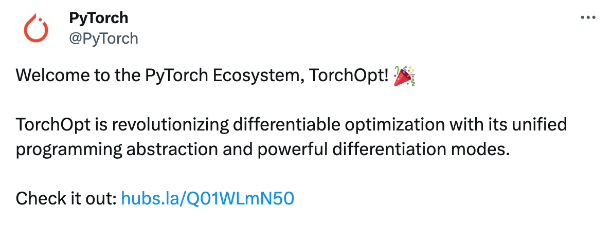 近日,北京大学人工智能研究院杨耀东课题组主导的开源项目TorchOpt,一款基于PyTorch的高效可微优化库,被PyTorch官宣纳入生态,并被机器学习期刊Journal of Machine Learning Research(JMLR)接收。