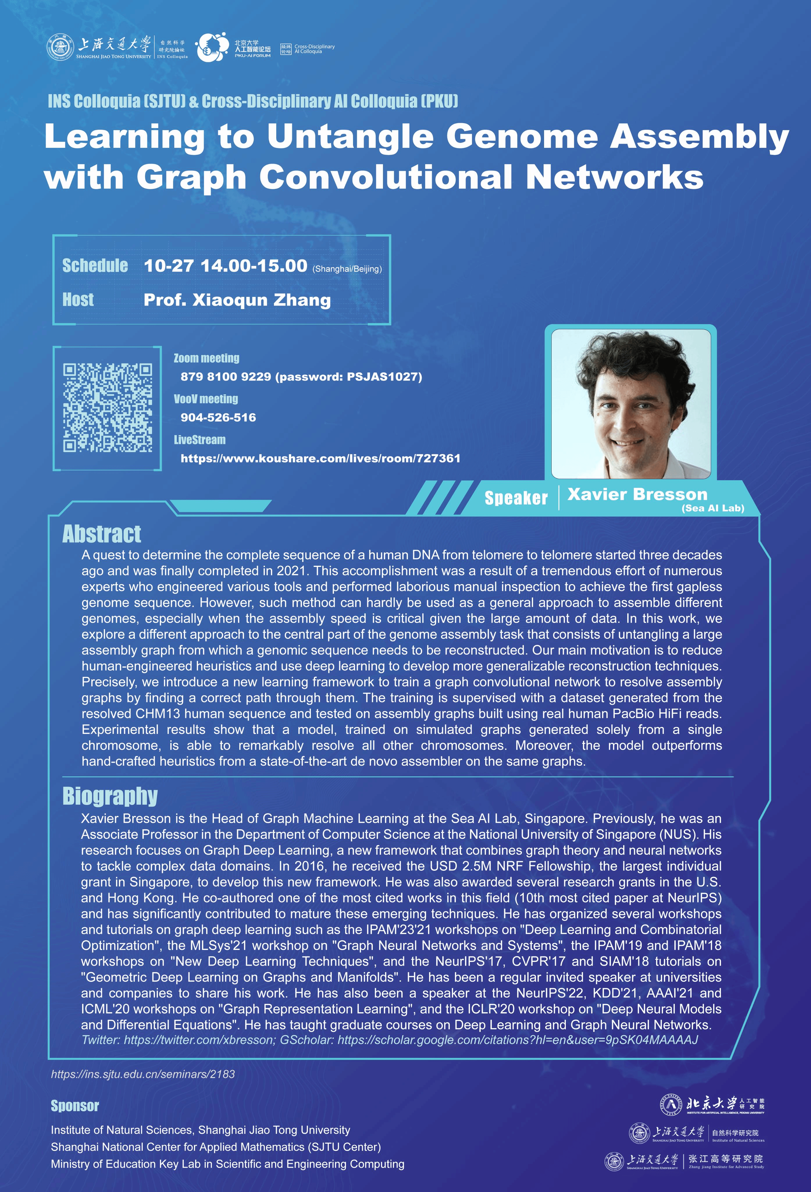 Xavier Bresson is the Head of Graph Machine Learning at the Sea AI Lab, Singapore. Previously, he was an Associate Professor in the Department of Computer Science at the National University of Singapore (NUS). His research focuses on Graph Deep Learning, a new framework that combines graph theory and neural networks to tackle complex data domains. In 2016, he received the USD 2.5M NRF Fellowship, the largest individual grant in Singapore, to develop this new framework. He was also awarded several research grants in the U.S. and Hong Kong. He co-authored one of the most cited works in this field (10th most cited paper at NeurIPS) and has significantly contributed to mature these emerging techniques. He has organized several workshops and tutorials on graph deep learning such as the IPAM'23'21 workshops on "Deep Learning and Combinatorial Optimization", the MLSys'21 workshop on "Graph Neural Networks and Systems", the IPAM'19 and IPAM'18 workshops on "New Deep Learning Techniques", and the NeurIPS'17, CVPR'17 and SIAM'18 tutorials on "Geometric Deep Learning on Graphs and Manifolds". He has been a regular invited speaker at universities and companies to share his work. He has also been a speaker at the NeurIPS'22, KDD'21, AAAI'21 and ICML'20 workshops on "Graph Representation Learning", and the ICLR'20 workshop on "Deep Neural Models and Differential Equations". He has taught graduate courses on Deep Learning and Graph Neural Networks. Online profiles: