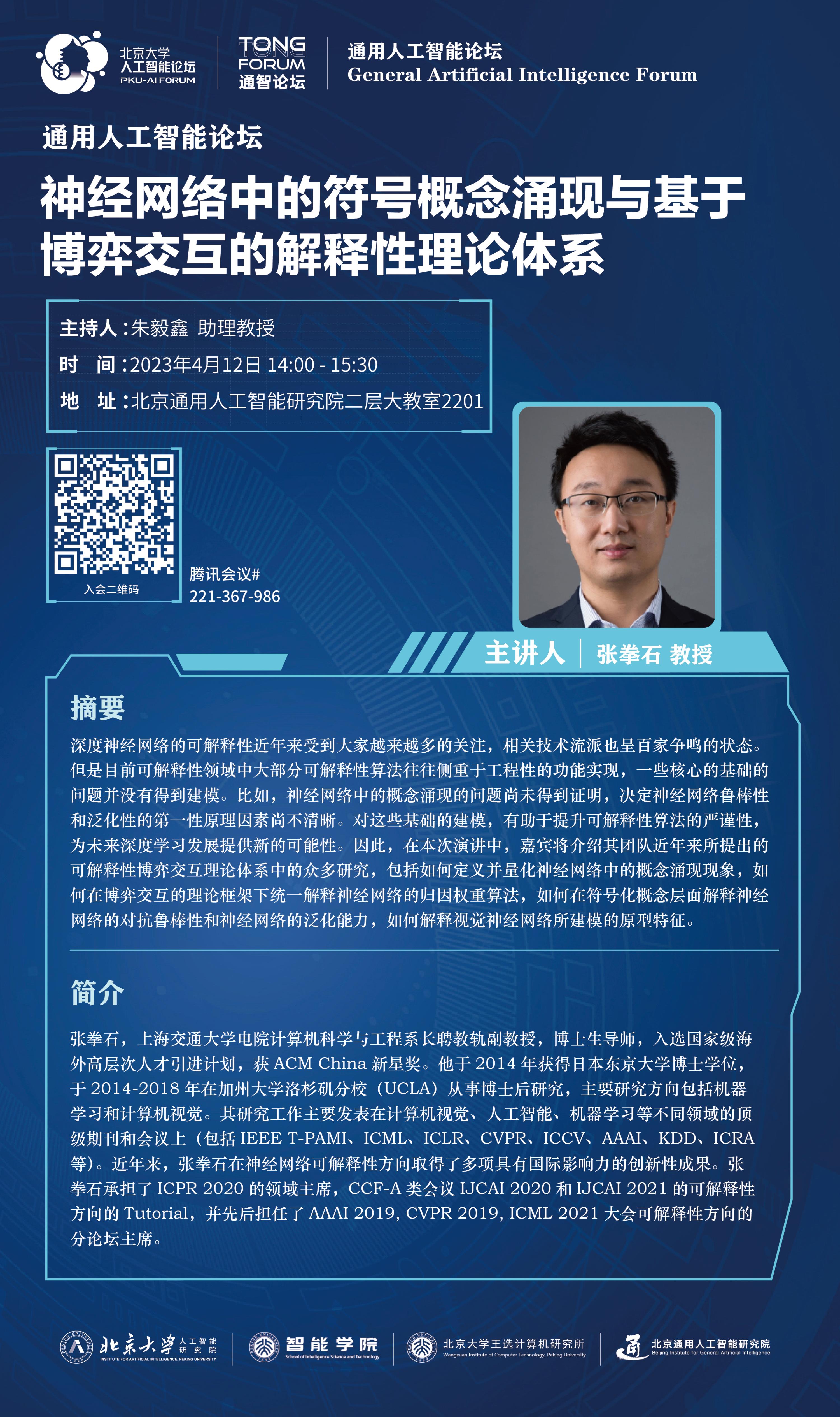 报告题目:神经网络中的符号概念涌现与基于博弈交互的解释性理论体系