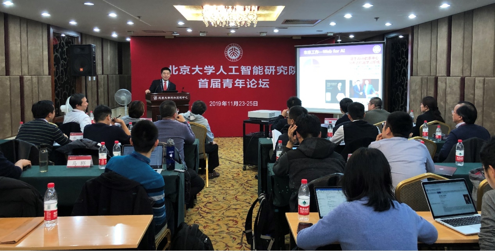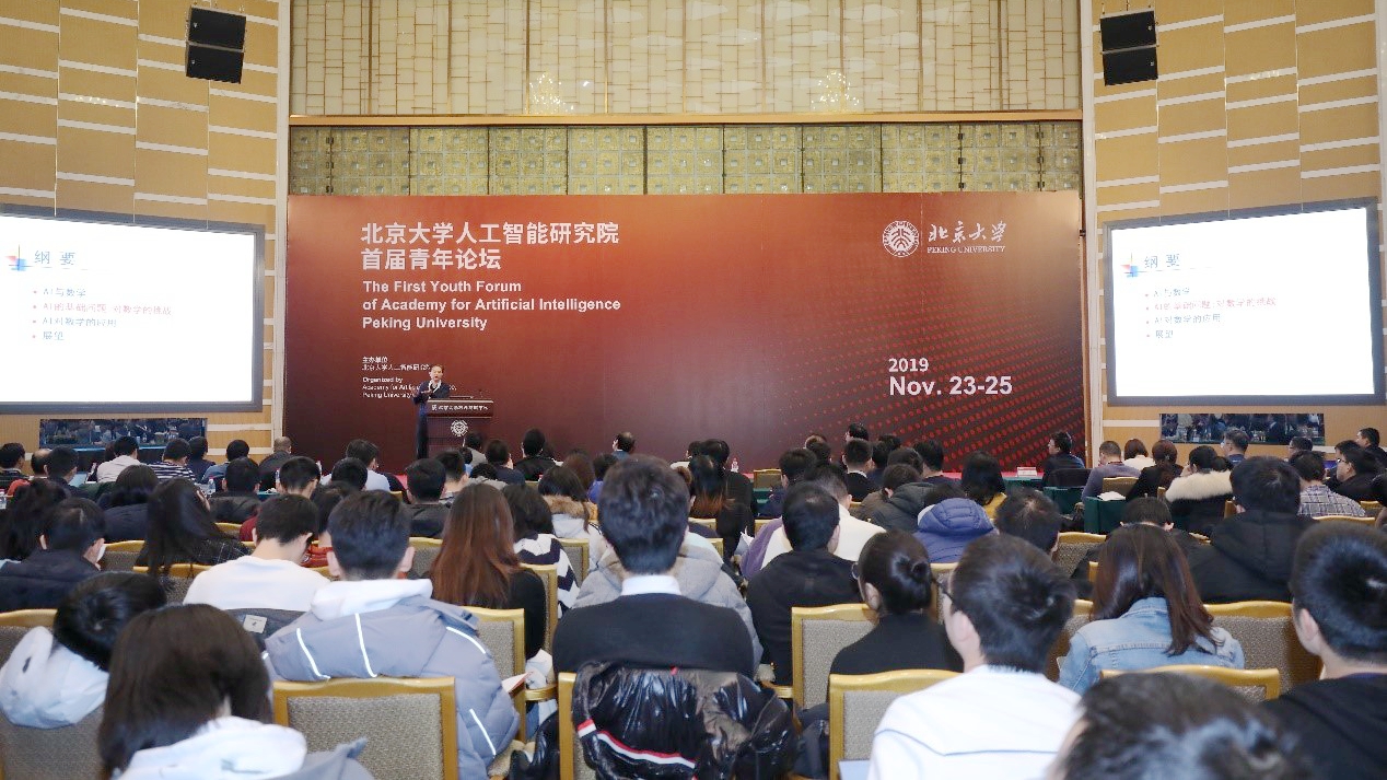 2019年11月23—25日,“北京大学人工智能研究院首届青年论坛”在北京大学英杰交流中心举行。11月24日上午,论坛开幕式在英杰交流中心阳光厅举行。北京大学校长助理、人工智能研究院院长黄如院士出席开幕式并致辞,军事科学院院长杨学军院士、西安交通大学徐宗本院士应邀为开幕式作主题报告。参加论坛的海内外青年学者和学科建设办公室、科学研究部、社会科学部、人事部等职能部门及全校相关专业的师生代表300余人参加开幕式。开幕式由北京大学人工智能研究院副院长黄铁军教授主持。