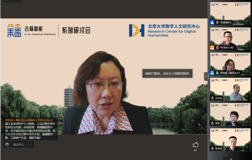 本次研讨会由全国高等院校古籍整理研究工作委员会和中国古籍保护协会古籍智能开发与利用专业委员会指导。本期研讨会视频回放已在B站更新:https://www.bilibili.com/video/BV18T4y1r7nD
