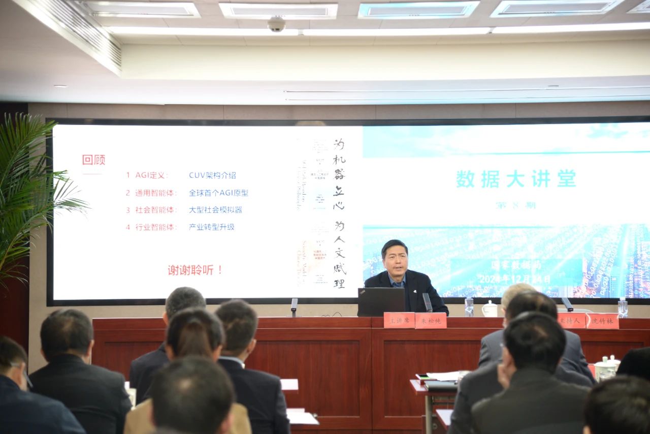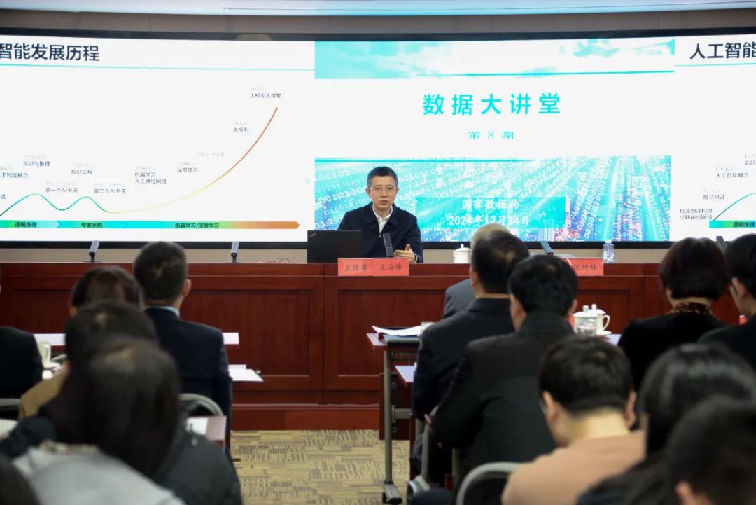 12月24日,国家数据局举办2024年第8期“数据大讲堂”,国家数据局党组书记、局长刘烈宏,副局长沈竹林、陈荣辉出席,北京大学人工智能研究院院长朱松纯、百度首席技术官王海峰分别进行授课。