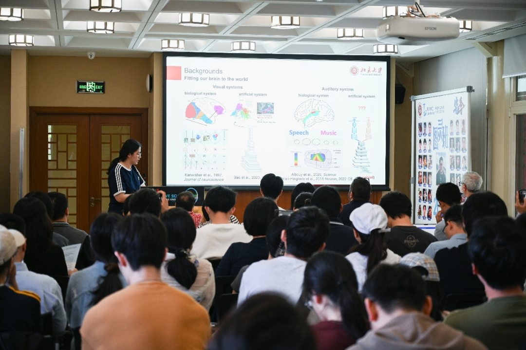 北京大学人工智能研究院博士生李世乾带来了通向类人直觉物理推理的探索,深入探讨了如何从计算视角模拟人类灵活高效的物理理解与预测。北京大学前沿交叉学科研究院博士生杨若霖则分享了人类听觉皮层对音乐与语言选择性神经表征及其与深度神经网络的高度相似性,揭示了听觉认知机制。
