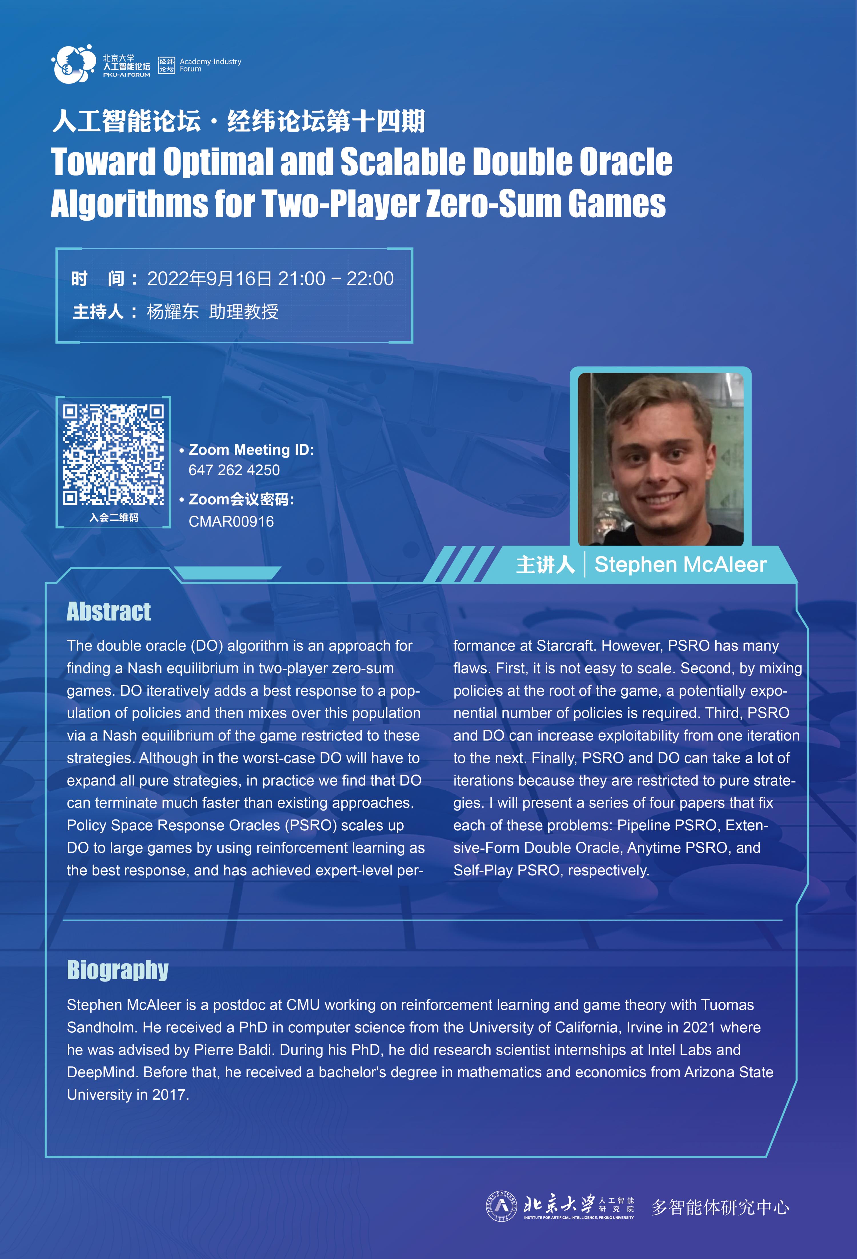 报告人:Stephen McAleer
