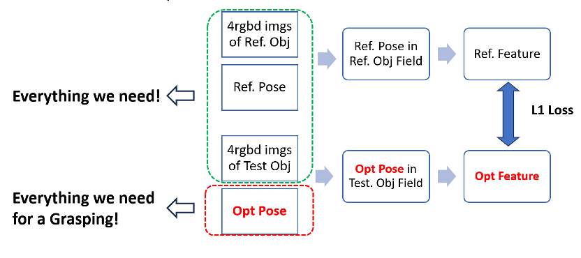 In traditional computer vision, feature representations are often used to convey image content, making direct alignment of robotic postures challenging. To address this, researchers have proposed constructing High-level Feature Fields that encapsulate semantic, geometric, and visual information. By mapping demonstration grasping postures and initialized grasping postures to the feature spaces and aligning them with optimizing methods, robots can effectively learn and replicate complex manipulation tasks.