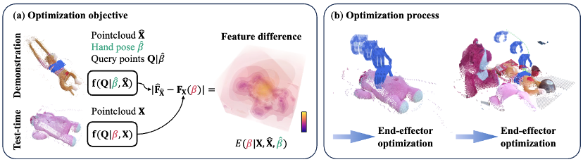 The team utilized the pruned point cloud to extract dexterous hand features. By analyzing the obtained feature differences, they performed end-effector optimization to minimize discrepancies between experimental and demonstration objects, ultimately determining the final grasping pose.
