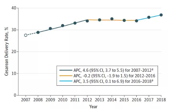 2020年1月7日国际知名医学期刊《JAMA》发表北京大学人工智能研究院公众智慧健康研究中心、公共卫生学院刘建蒙团队研究成果,题为“Trends in Cesarean Delivery Rates in China, 2008-2018” (Research Letter)。