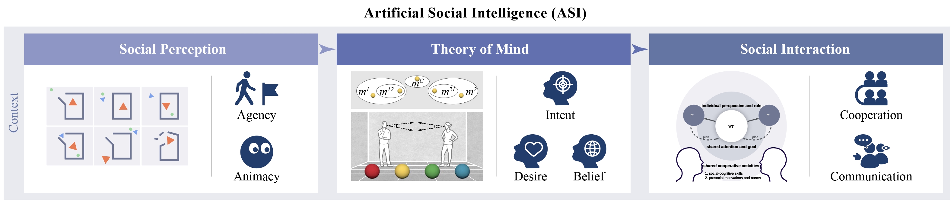 近期,通用人工智能受到了广泛关注,很多人认为通用人工智能的实现似乎近在眼前,然而这其中还有很多问题没有得到解决,其中的一个关键挑战就是人工社会智能(ASI)—— 除了对世界的物理理解,人类还拥有高度的社会智能,一种感知社会事件、推断他人目标和意图并促进社交互动的智能。这种社会智能是人类与最接近的灵长类亲戚区分开来的关键特质。然而,将这种独特智能应用于人工智能领域是一项极具挑战性的任务。
