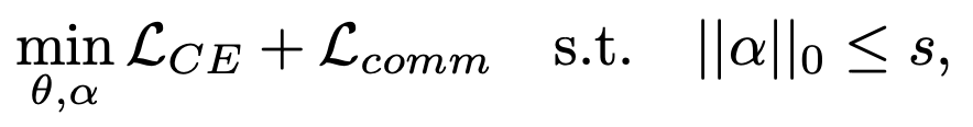 并且同时优化模型权重参数 θ和架构参数α。为了使CoPriv的剪枝关注到通信量较大的层,我们定义了如下带通信感知正则项的损失函数: