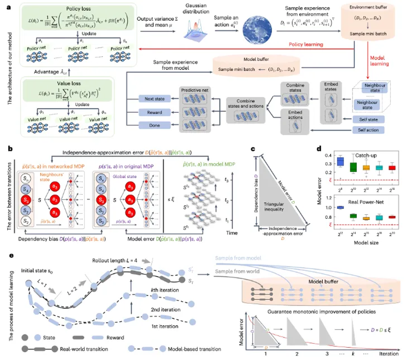 近日,北京大学人工智能研究院助理教授杨耀东课题组及合作团队在人工智能顶级学术期刊Nature Machine Intelligence上发表题为“Efficient and scalable reinforcement learning for large-scale network control”的论文。论文提出的基于模型的去中心化策略优化方法取得重大突破。这一成果首次在多智能体系统中实现了高效的去中心化协同训练和决策,显著提升了人工智能决策模型在大规模多智能体系统中的扩展性和适用性。