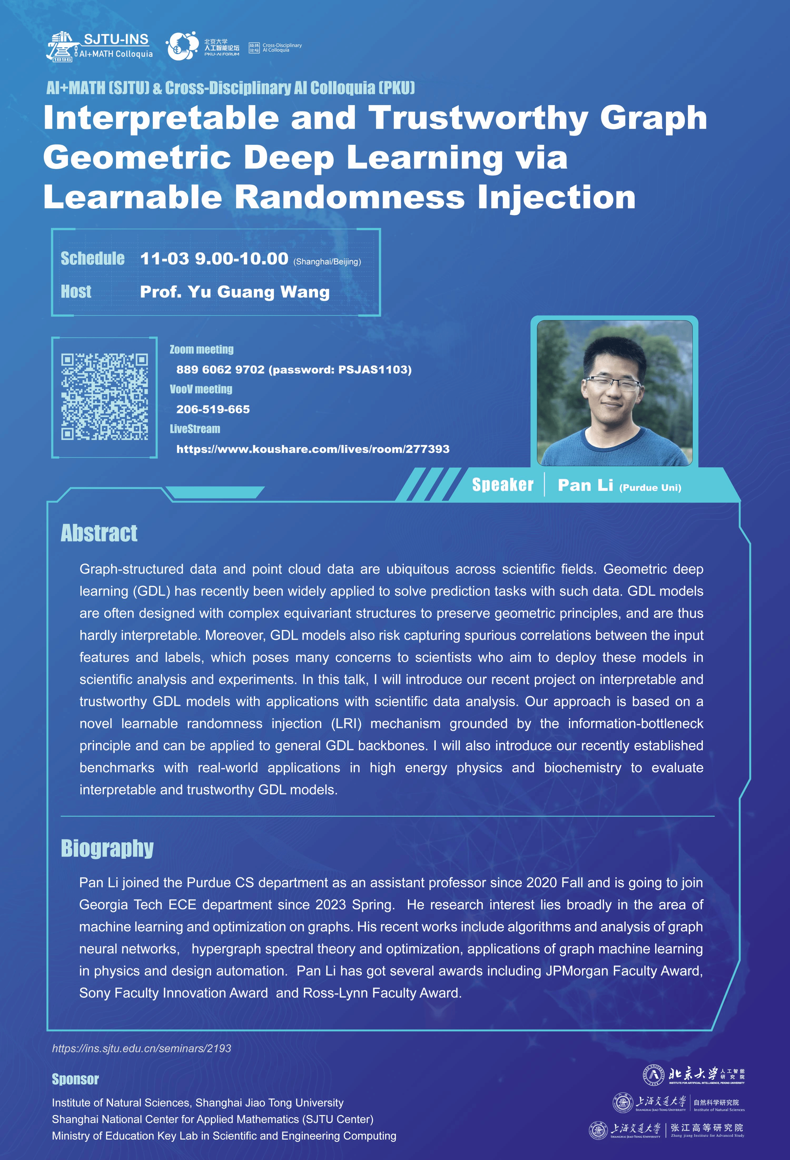 Pan Li joined the Purdue CS department as an assistant professor since 2020 Fall and is going to join Georgia Tech ECE department since 2023 Spring. He researches interest lies broadly in the area of machine learning and optimization on graphs. His recent works include algorithms and analysis of graph neural networks, hypergraph spectral theory and optimization, applications of graph machine learning in physics and design automation. Pan Li has got several awards including JPMorgan Faculty Award, Sony Faculty Innovation Award and Ross-Lynn Faculty Award.