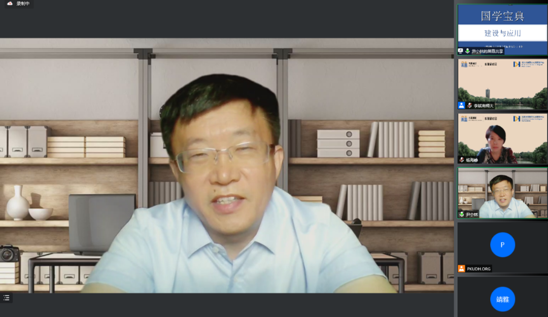 本期研讨会的主题为“古籍专题资源库的建设”,南京农业大学数字人文研究中心包平教授、首都师范大学电子文献研究所尹小林教授、中国中医科学院中医药信息研究所李海燕所长和北京如是人工智能技术研究院释贤度法师先后发表了精彩的报告,随后杨海峥教授主持了讨论和互动环节。本次研讨会通过腾讯会议、Bilibili、抖音和蔻享平台同步直播,吸引了来自国内外高校及相关研究领域的共计700多名观众在线观看。