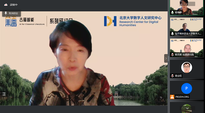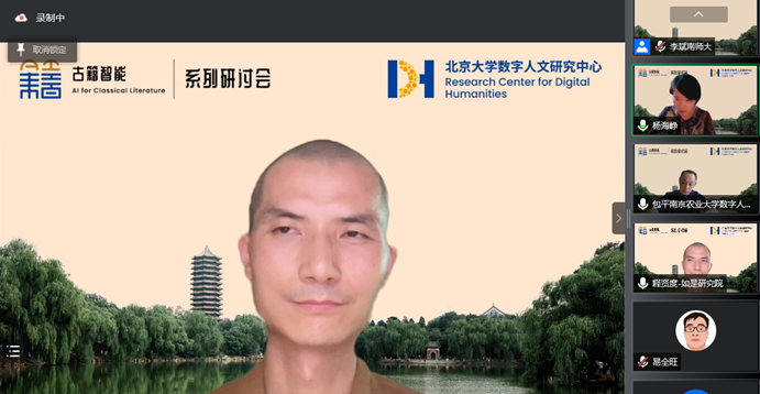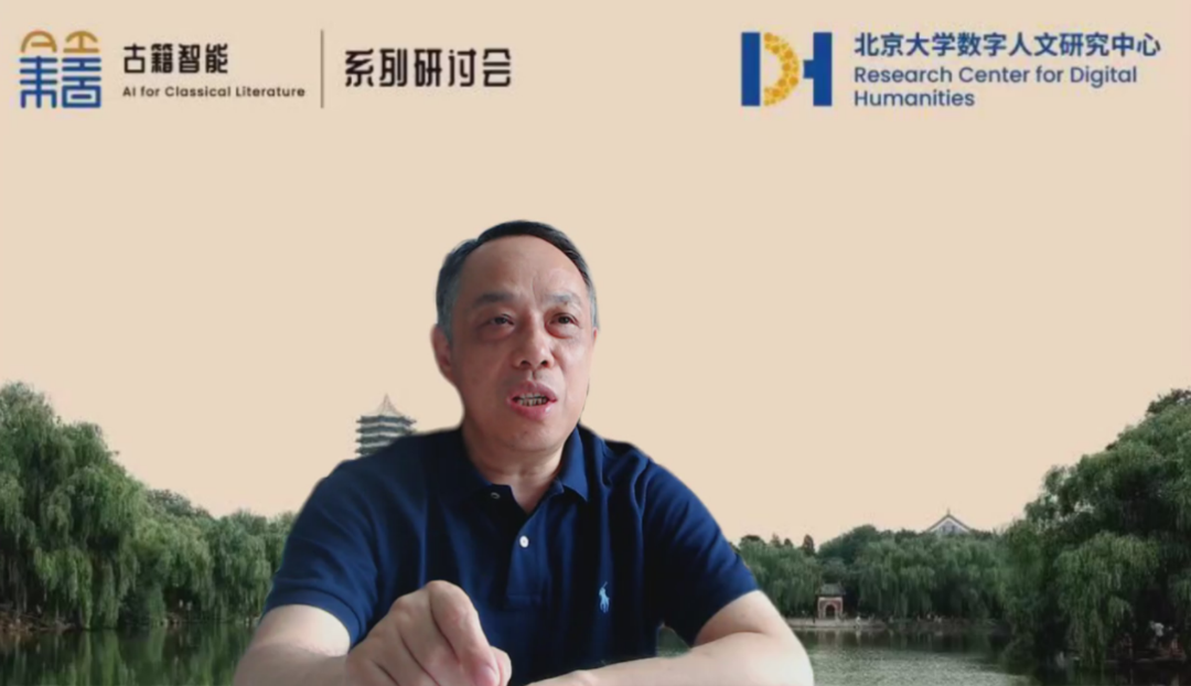 2022年6月25日下午两点,“古籍智能信息处理”系列专题研讨会第五讲在腾讯会议举行。此次研讨会由北京大学-字节跳动数字人文开放实验室、中国古籍保护协会古籍智能专委会主办,北京大学数字人文研究中心、北京大学人工智能研究院承办,会议由北京大学中国语言文学系杨海峥教授、南京农业大学数字人文研究中心包平教授主持。