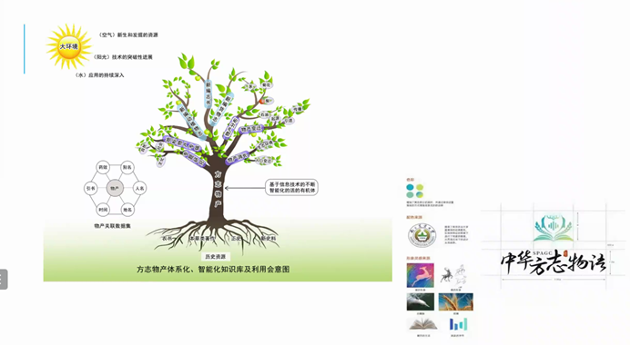 包平教授从历史文献所反映的物种的演变与消长、文明与物产的关系问题引入,先回顾了“物产”一词的肇始和我国方志文献的历史发展状况,之后介绍了《方志物产》一书的文献涵盖范围、内容来源及历史发展演变,阐明了资料再辑录、整理与数字化、方志物产资料的多层级自动标注等诸多具体技术原理,最后提出了包括中华物产全景、物产功效的开发和文旅产品开发在内的诸多可应用场景,为方志物产知识库的未来发展指明了方向。