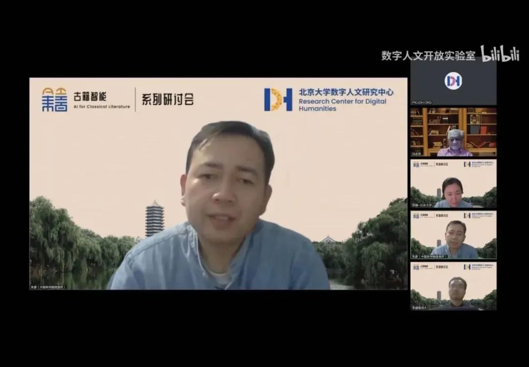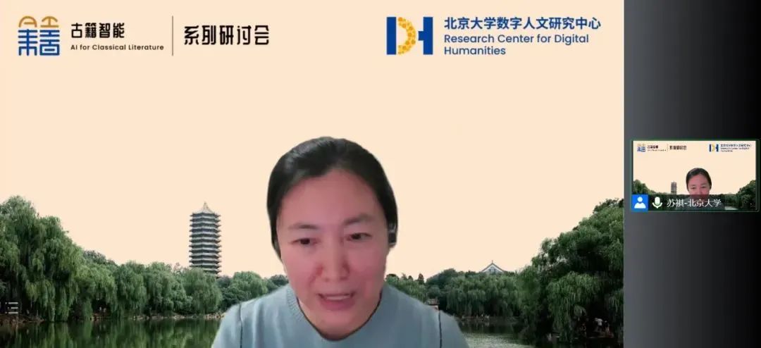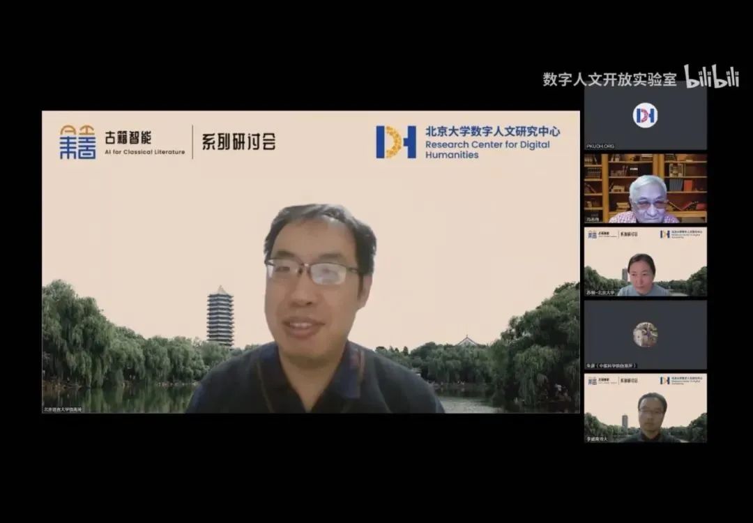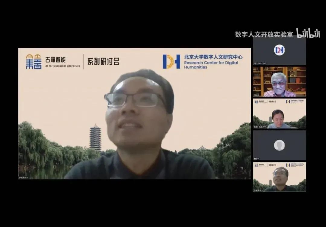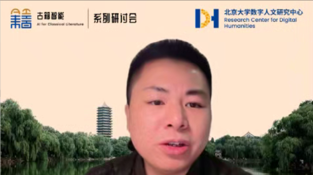 2022年11月20日下午两点,由北京大学数字人文研究中心、北京大学人工智能研究院主办的“古籍智能信息处理”系列专题研讨会第九讲在腾讯会议如期举行。本次讲座由北京大学数字人文研究中心、中国古籍保护协会古籍智能开发与利用专委会主办,北京大学中国古文献研究中心、南京师范大学文学院联合主办,北京大学-字节跳动数字人文开放实验室、北京大学人工智能研究院承办,会议由北京大学苏祺副教授和南京师范大学李斌副教授主持。