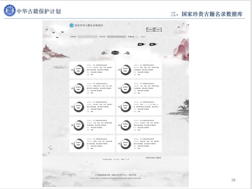 包菊香老师详细介绍了国家古籍保护中心立足于工作实际而建设的各古籍书目数据库。全国古籍普查登记平台及全国古籍普查登记基本数据库分别是全国古籍普查登记工作的工作平台和发布平台,有效保障了全国古籍普查登记工作的开展及其成果的展示,最终将形成中国境内现藏古籍的统一联合目录,将完整揭示中国境内古籍的存藏情况,而海外中华古籍书目数据库的建设旨在尽快摸清海外中华古籍的存藏情况,这三个数据库均是从空间维度出发开展古籍的调查工作;中华历代古籍书目数据库则是从时间维度出发开展古籍的调查工作,从而摸清我国历代典籍的流散历史和相关学术的演变脉络。国家珍贵古籍名录数据库是以数据库的形式公开发布第一批至第六批《国家珍贵古籍名录》收录的古籍信息,展示的是从中国境内一、二级古籍中遴选的具有重要文物、文献、艺术价值的珍贵古籍。对于未来古籍书目数据库的发展,包菊香老师提出了几点展望,如对数据进行规范统一、细粒度化的标引,切实加强各古籍书目数据库之间的互联互通,以期为公众提供更佳的使用效果。
