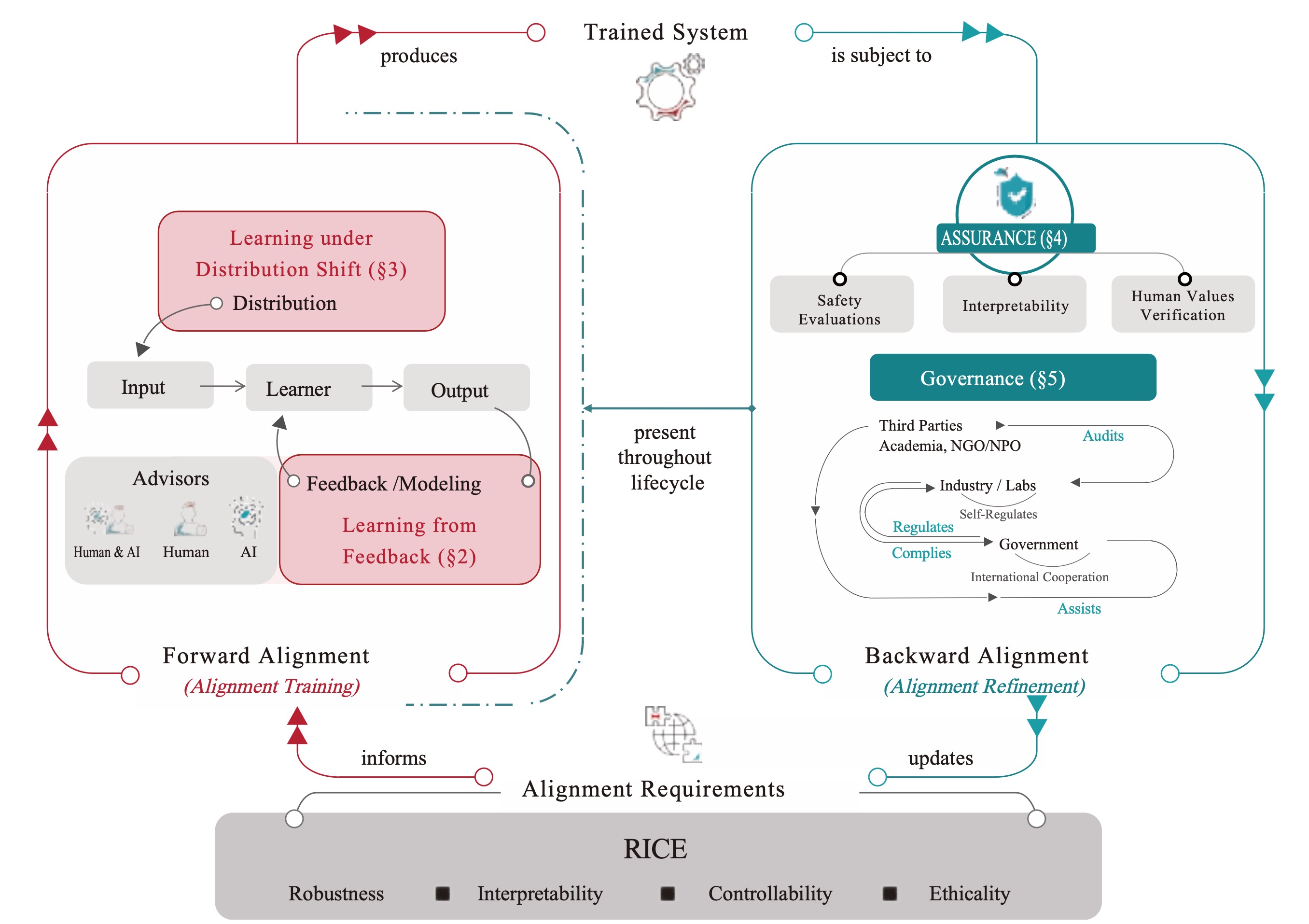 2. 2023 年英国首届人工智能安全峰会前,杨耀东研究员联合多高校团队发布《人工智能对齐全面性综述》,是全球首个也是目前最全面的对于价值对齐工作的调研总结,该综述首次提出以 RICE 原则来概括 AI 对齐的宏观目标,涉及鲁棒性可解释性、可控性和道德性,引起广泛关注。